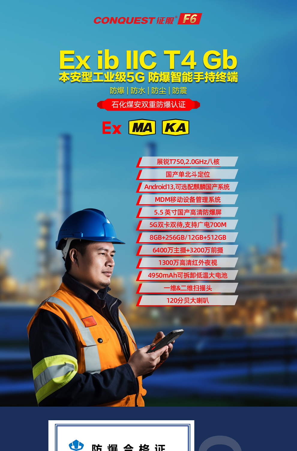 CONQUEST征服F6 轻薄型5G国产芯单北斗定位防爆智能对讲终端!可定制麒麟/鸿蒙系统