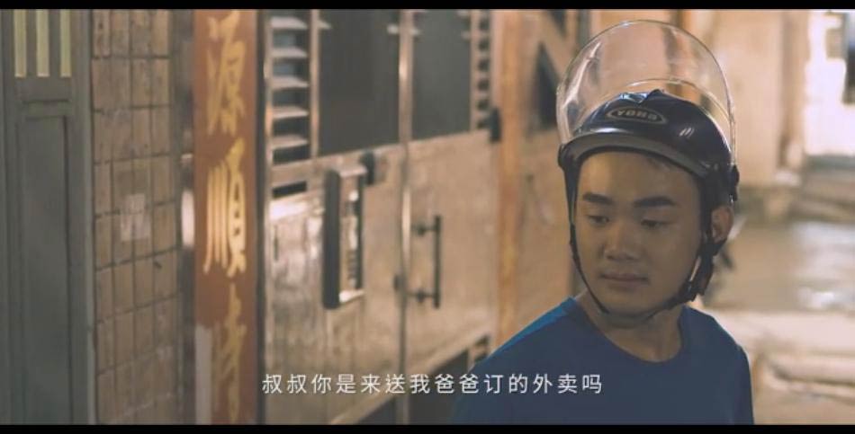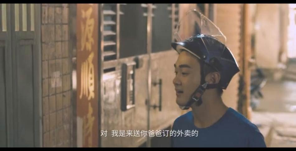 开篇,一个长相酷似王祖蓝的外卖小哥刚将一单外卖送到,时间是21:30分,已经从早跑到晚。这时,一个新订单传来,尽管已经想结束今天的工作,但从备注上了解到这是给孩子订的外卖,外卖小哥还是笑着接下来了这单。