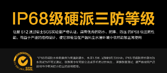 Compared with previous mobile phones, the appearance of CONQUEST S12 is basically the same, but this S12 uses a new composite material, the protective performance is better than the previous S11, the anti-fall height is raised to 1.5 meters, the overall feel is also improved, there is a point that consumers are more concerned about the price problem, this time the CONQUEST S12. The price is 2588 yuan, which is more cost-effective than the previous price of 211, 2988 yuan.