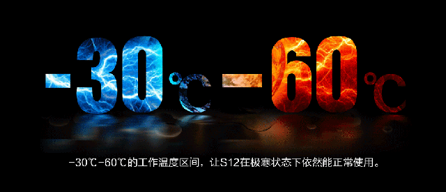 征服S12不仅是IP68硬派三防等级,更通过了美国军标防护认证,在零下30摄氏度至60摄氏度的温度下也能正常使用!