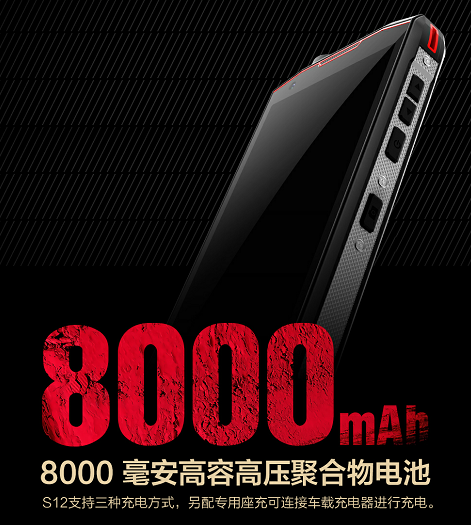 征服S12的电池容量达8000毫安,采用高容高压聚合物电池,并支持USB直充+座式充电+磁吸充电三种方式,通过配备的9V 2A充电器直充,充满8000毫安也只需四小时。
