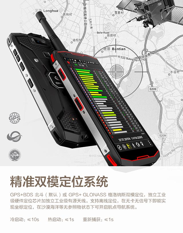 Support GPS+BDS Beidou or GPS+GLONASS GLONASS dual-mode positioning, the combination of independent industrial-grade hardware positioning chip and independent industrial-grade active antenna allows S12 mobile phone to support offline positioning, which can still be realized without card and no signal. Coordinate positioning, in the state of no-paragraph crops, the function of the waypoint navigation system has been fully exerted. 8000 mAh or more large optional large-capacity explosion-proof battery and the front FF13 million post-PDAF 21 million high-definition camera artificial sapphire camera lens with special camera buttons and high-bright dual LED flash so that S12 can also take pictures underwater under the water!