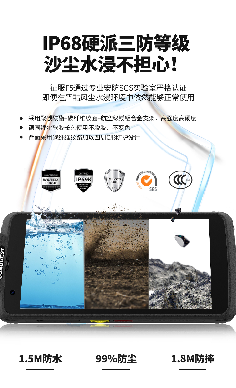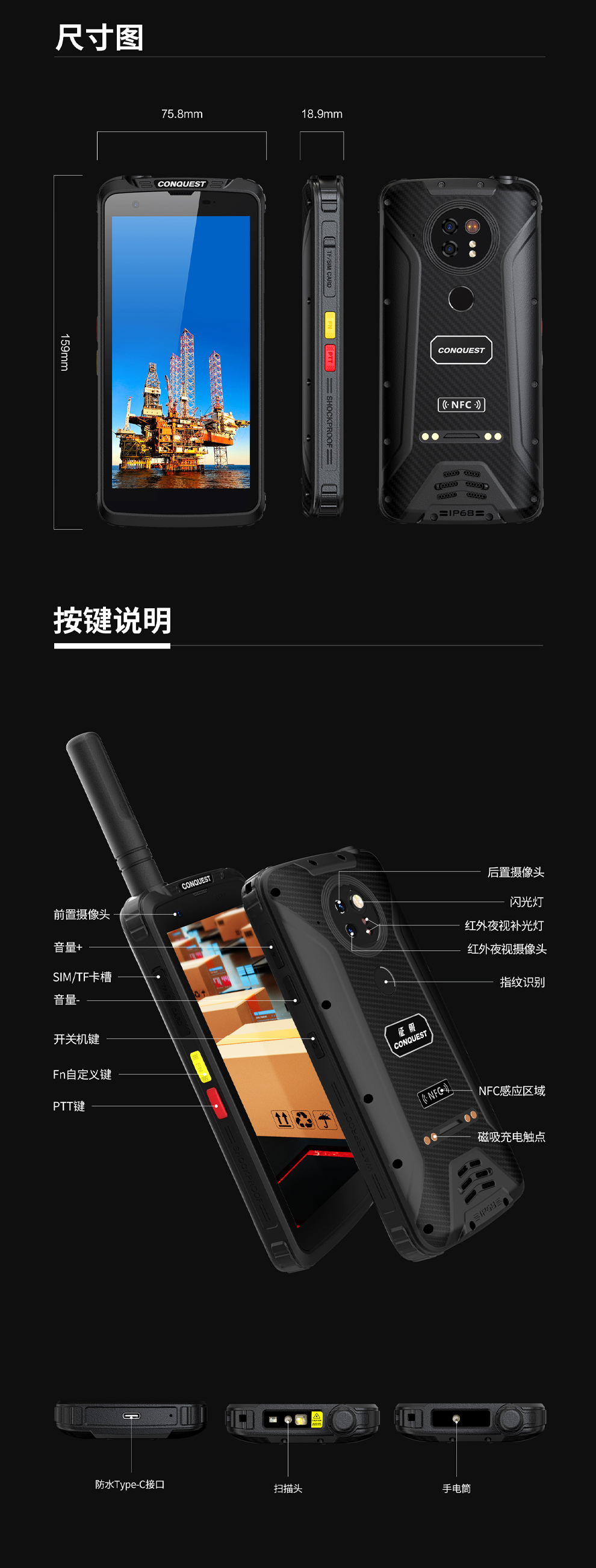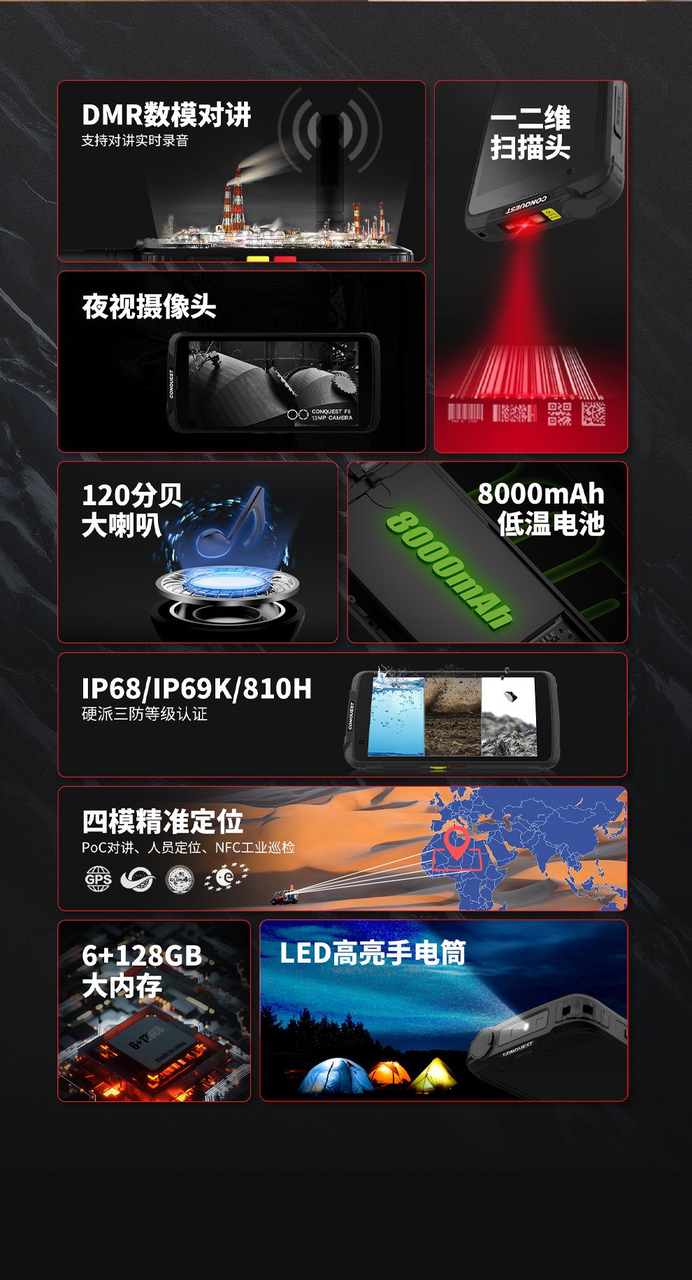 CONQUEST征服F5 智能防爆手机对讲终端,智能防疫核验手持终端,DMR数模对讲、红外夜视摄像RTK高精度定位