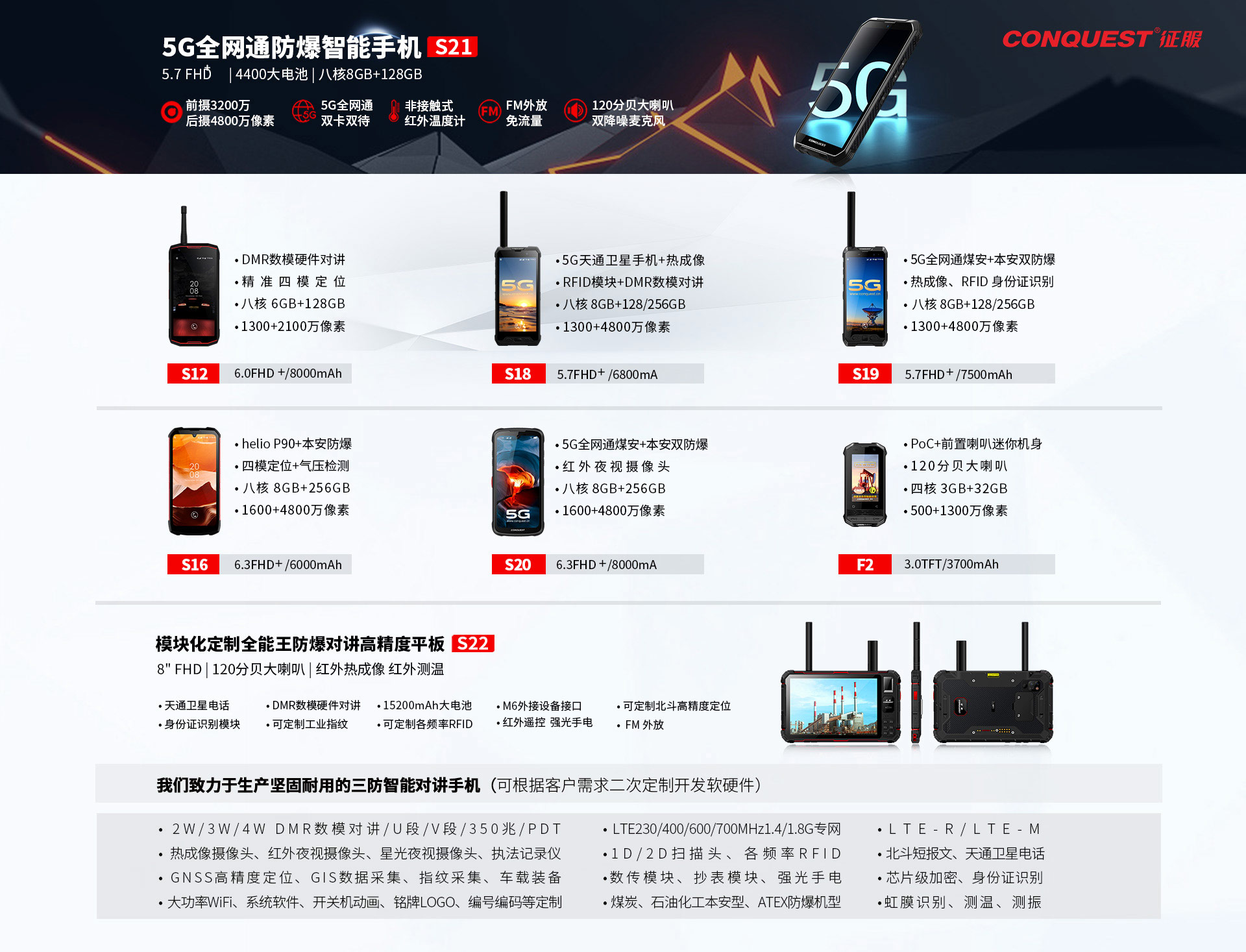 CONQUEST征服S6(2018款全网通版)6000毫安高压高容电池!支持座充!四防智能手机!双卡双待!移动联通双4G!5模16频/模20频!主卡支持移动联通电信4g3g2g网络,副卡支持移动联通4g3g2g网络!支持双卡任意软件切换主副卡!64位1.7G八核!ROM32GB/16GB+RAM3GB/2GB!GPUMali–T760!