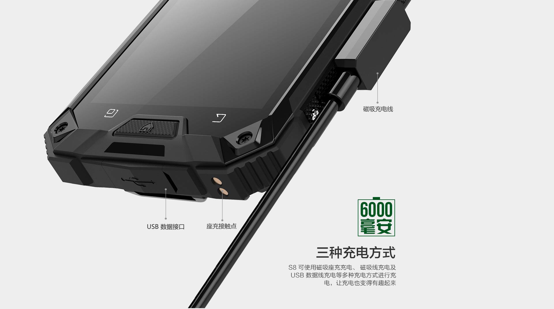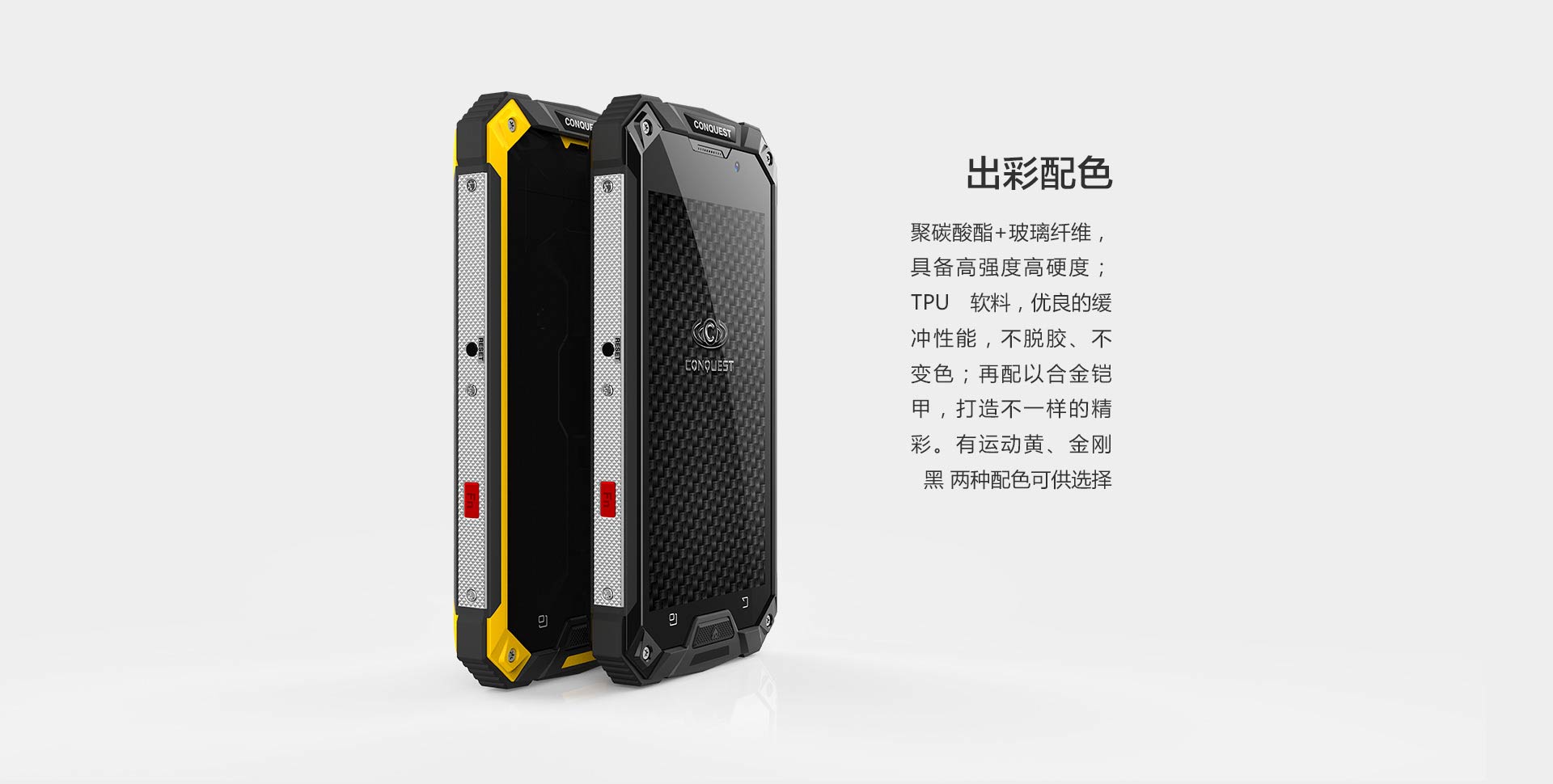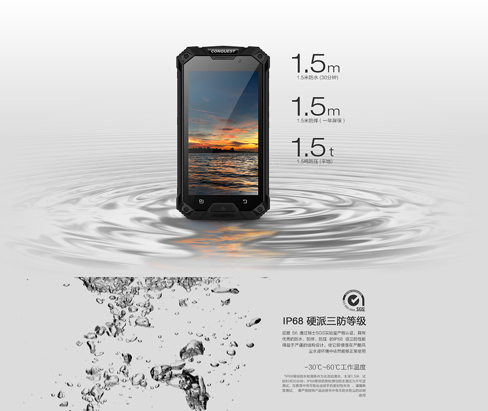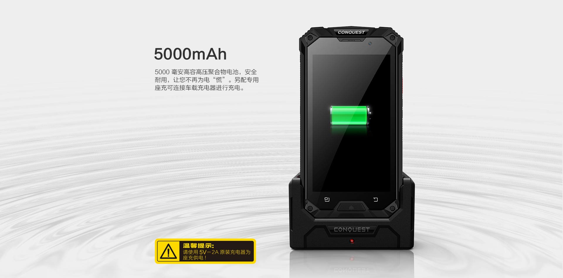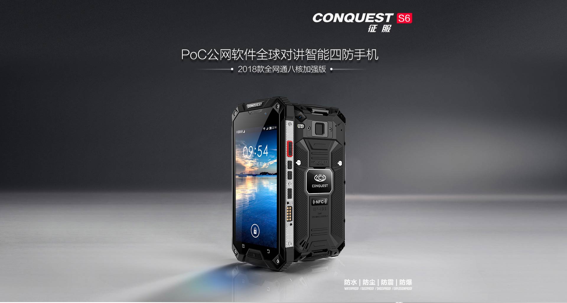CONQUEST征服S6(2018款全网通版)6000毫安高压高容电池!支持座充!四防智能手机!双卡双待!移动联通双4G!5模16频/模20频!主卡支持移动联通电信4g3g2g网络,副卡支持移动联通4g3g2g网络!支持双卡任意软件切换主副卡!64位1.7G八核!ROM32GB/16GB+RAM3GB/2GB!GPUMali–T760!