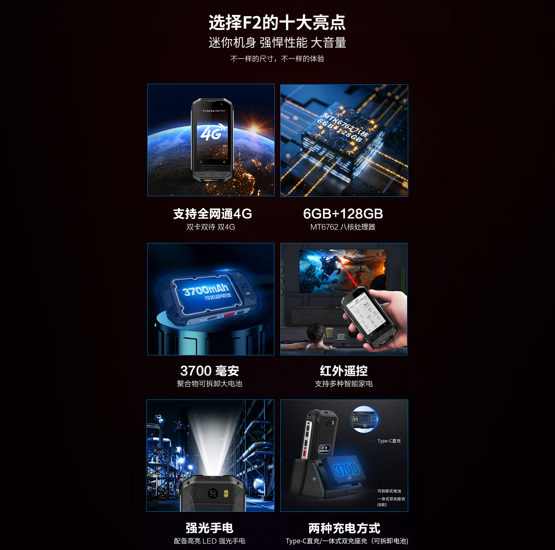 征服CONQUEST F2迷你三防智能手机升级配置:LED高亮强光手电、红外遥控、指南针、后1300万PDAF摄像头